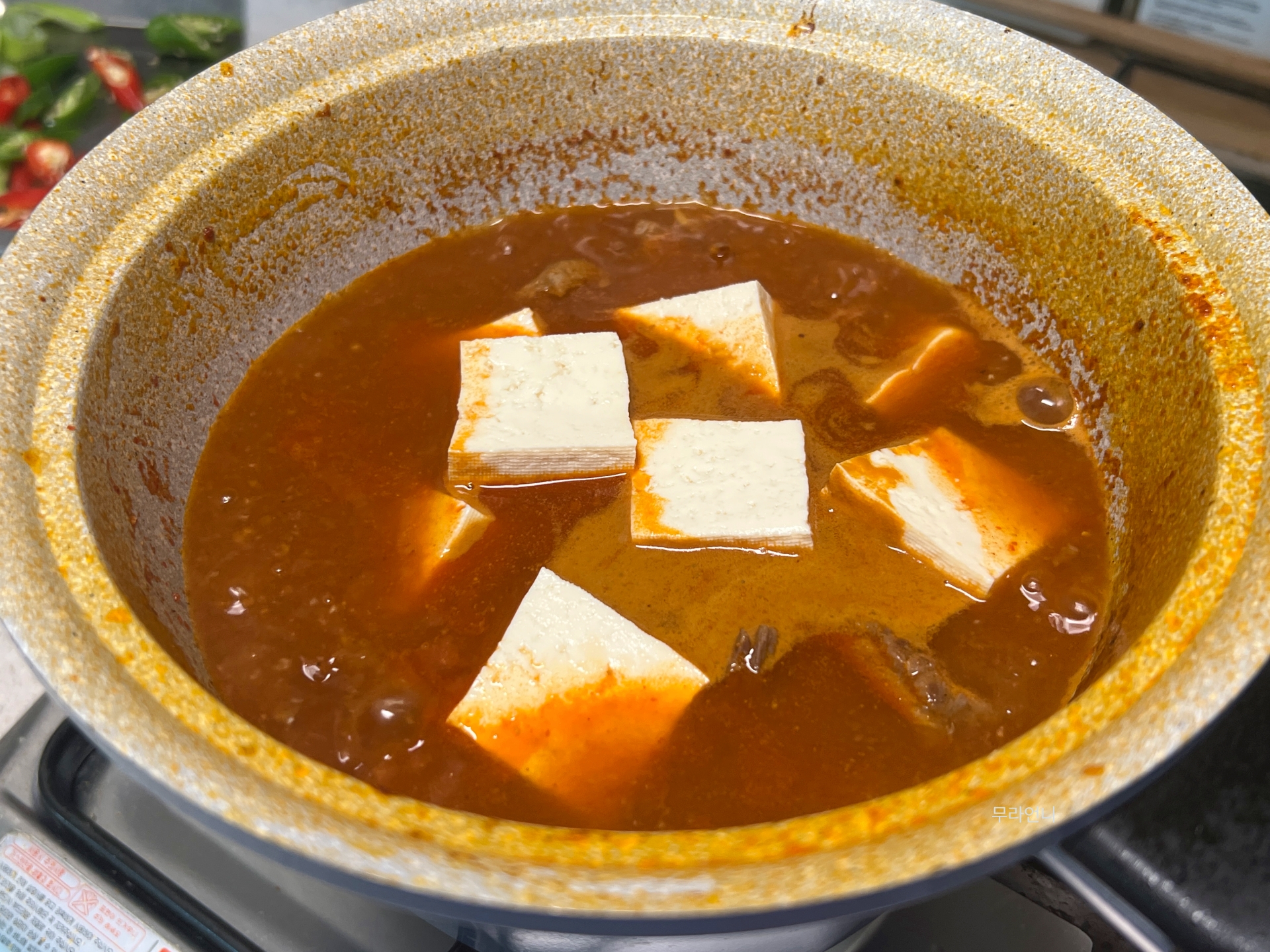 물을 붓고 찌개를 센 불에서 끓인 뒤