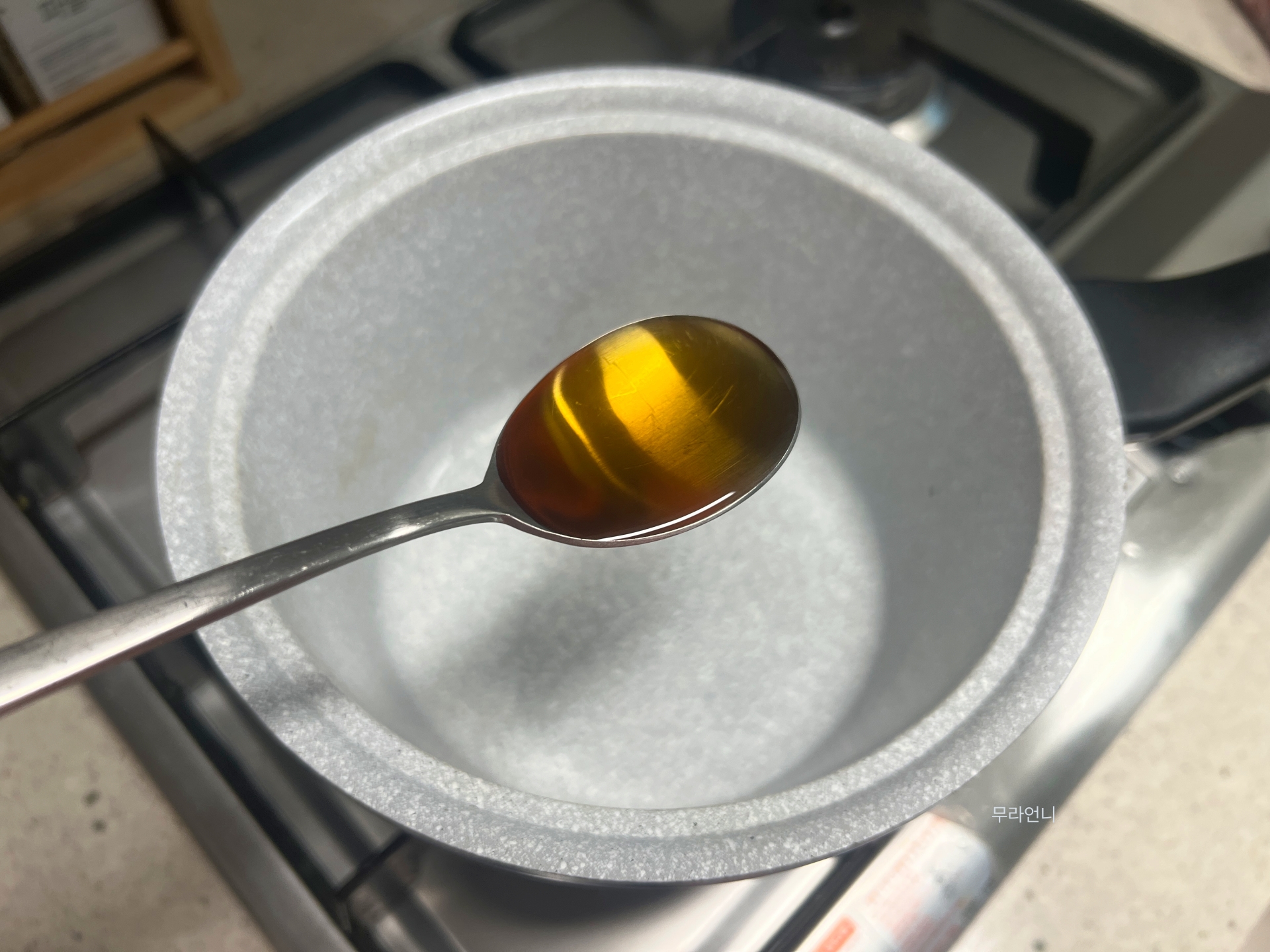 고추기름을 낸 뒤 물을 1L 부어주세요
