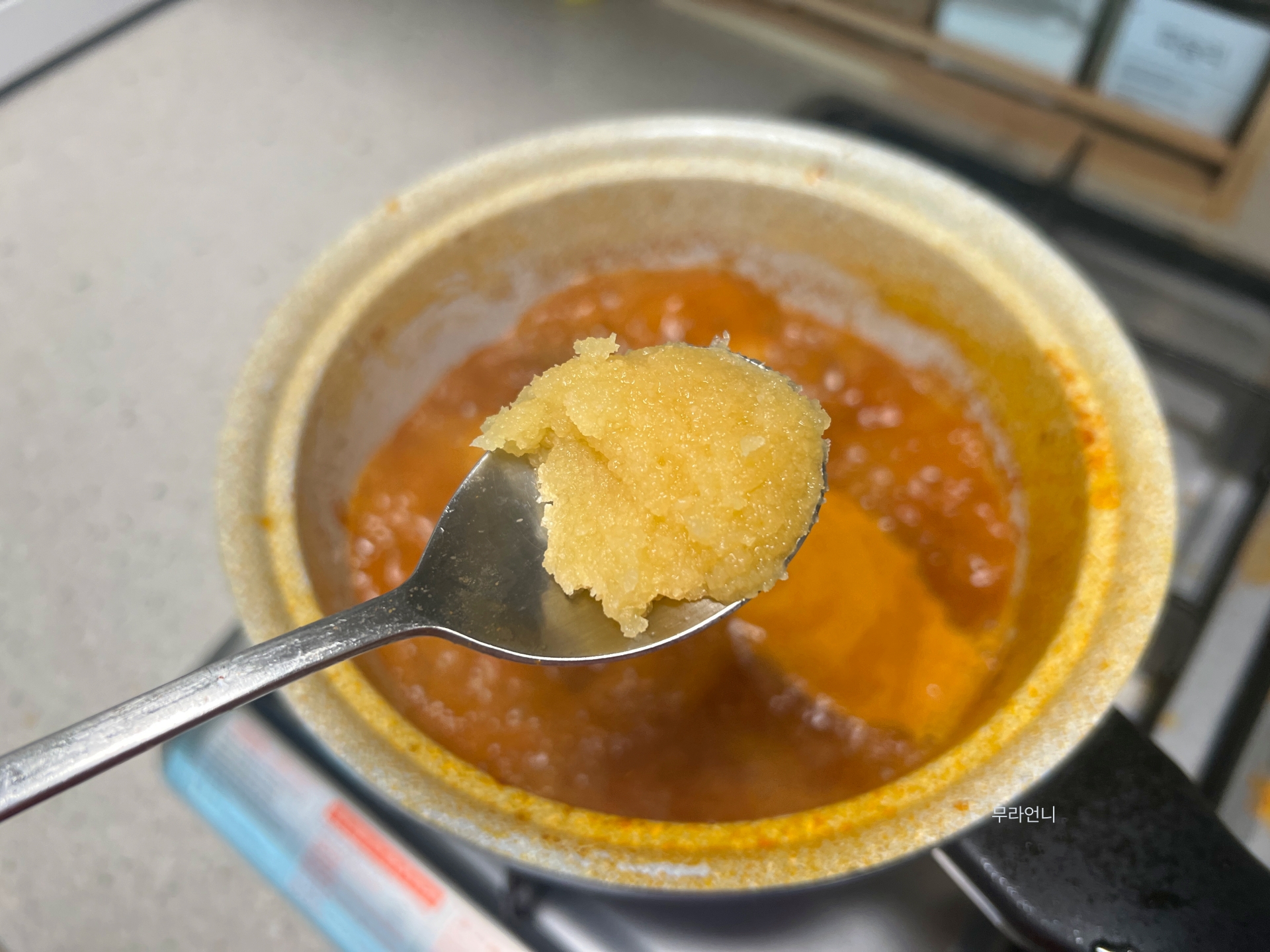엄마가 끓여준 고추장찌개가 너무 맛있어서