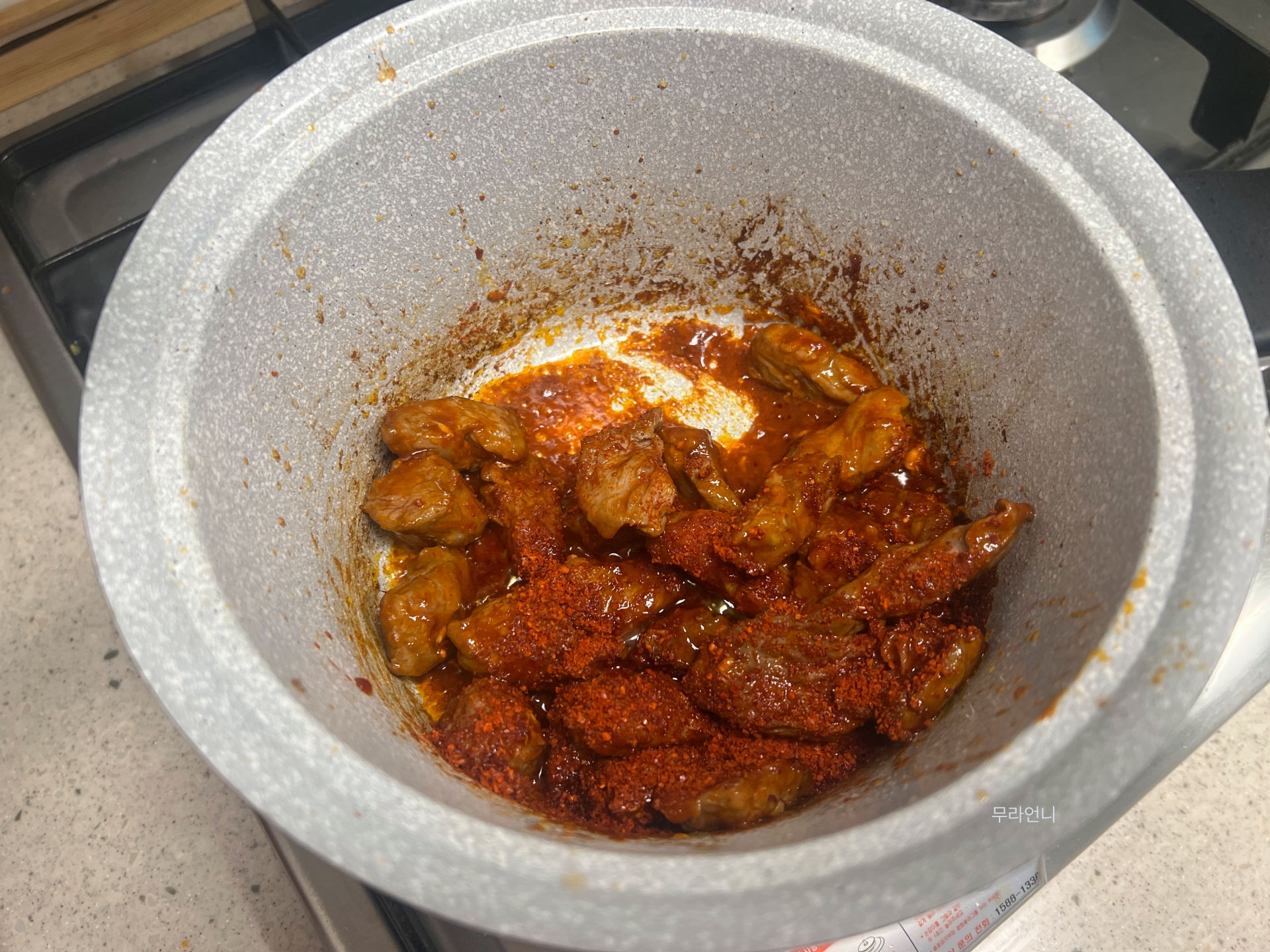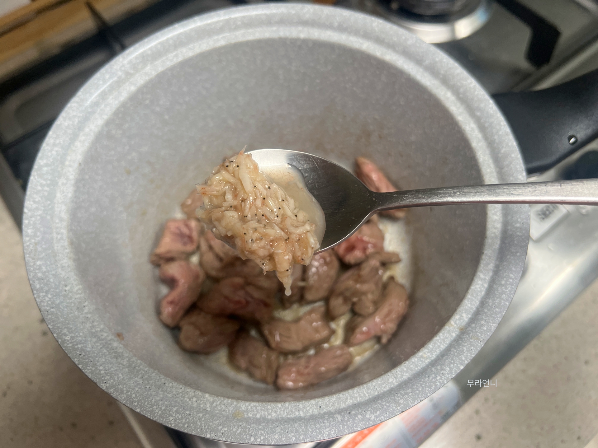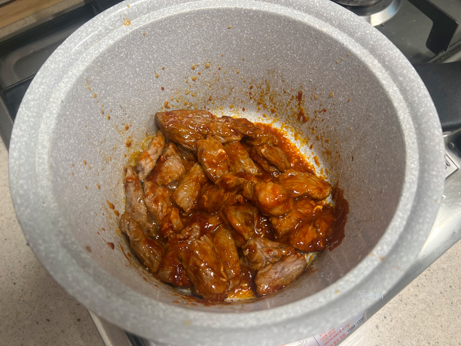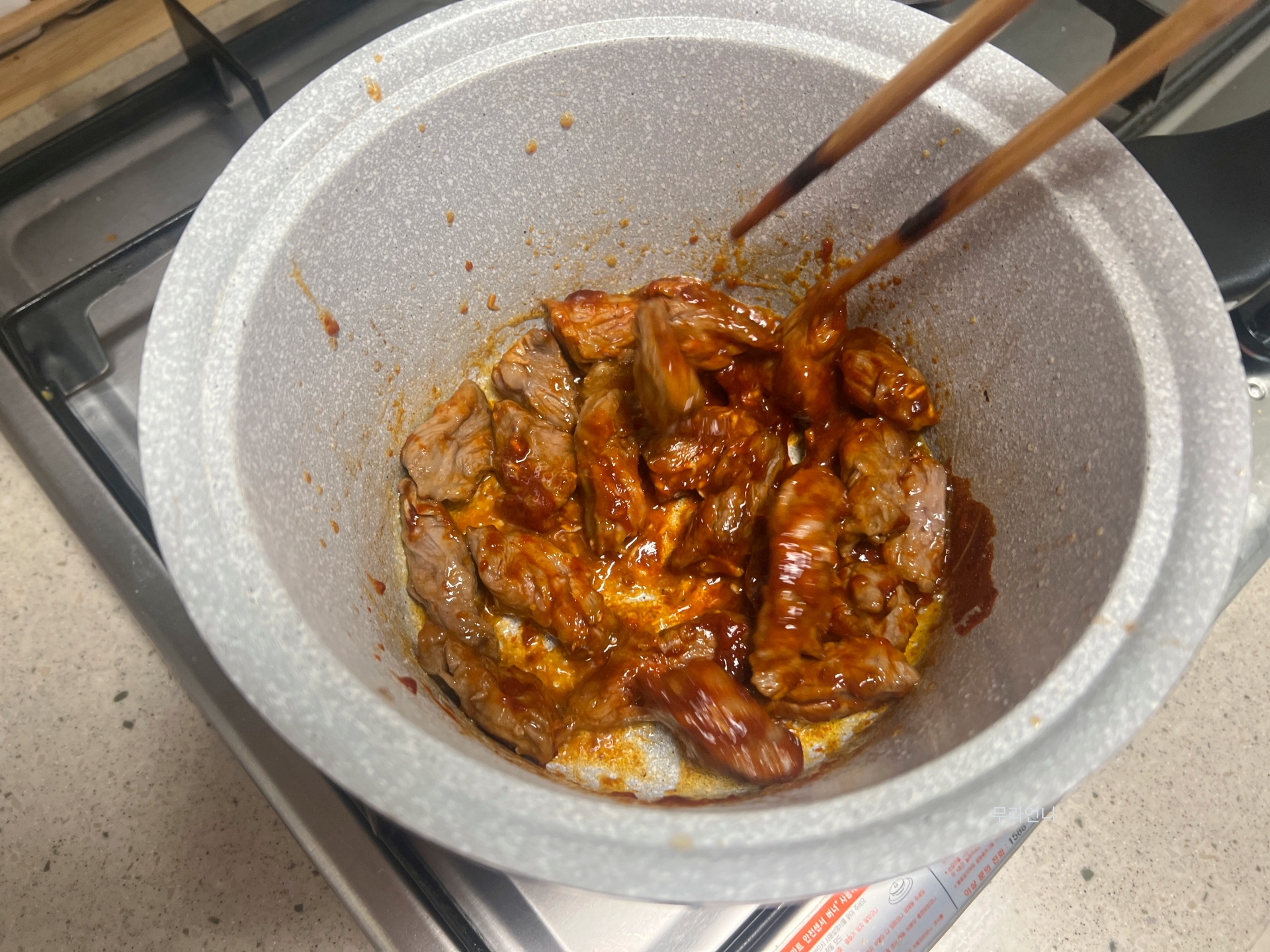고기와 양념을 계속 섞어주세요
