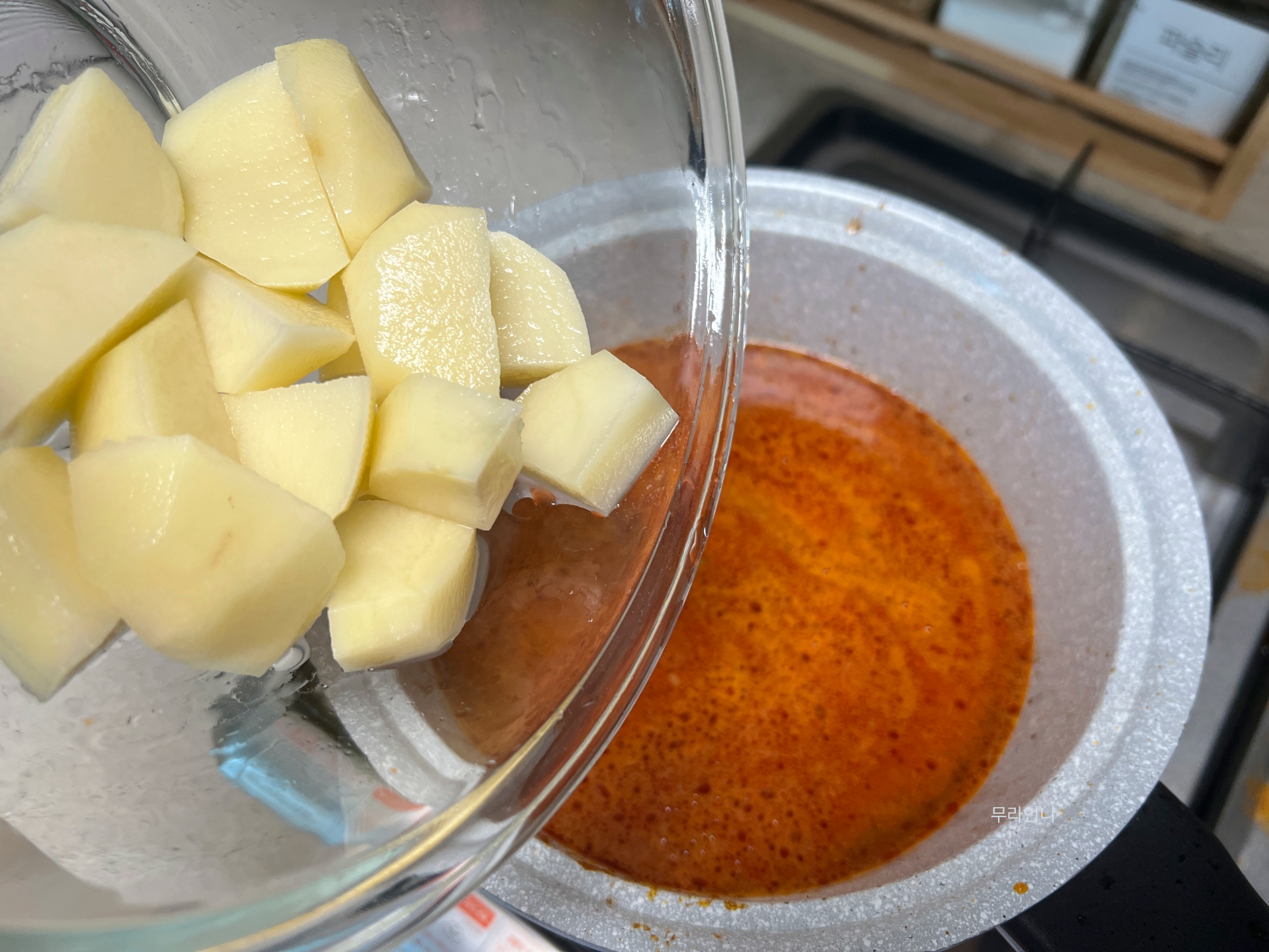 찌개가 끓으면 감자를 넣어 주세요