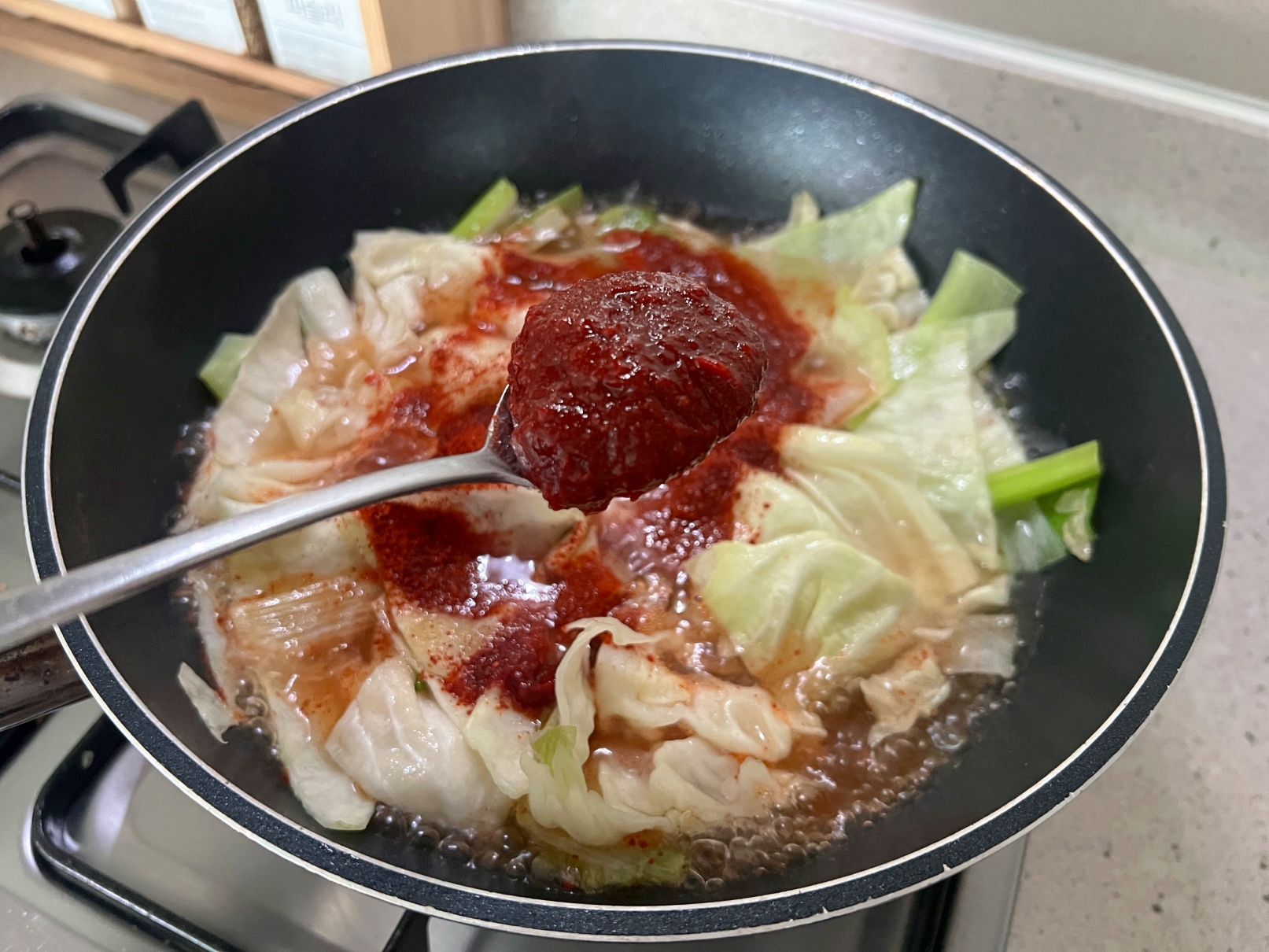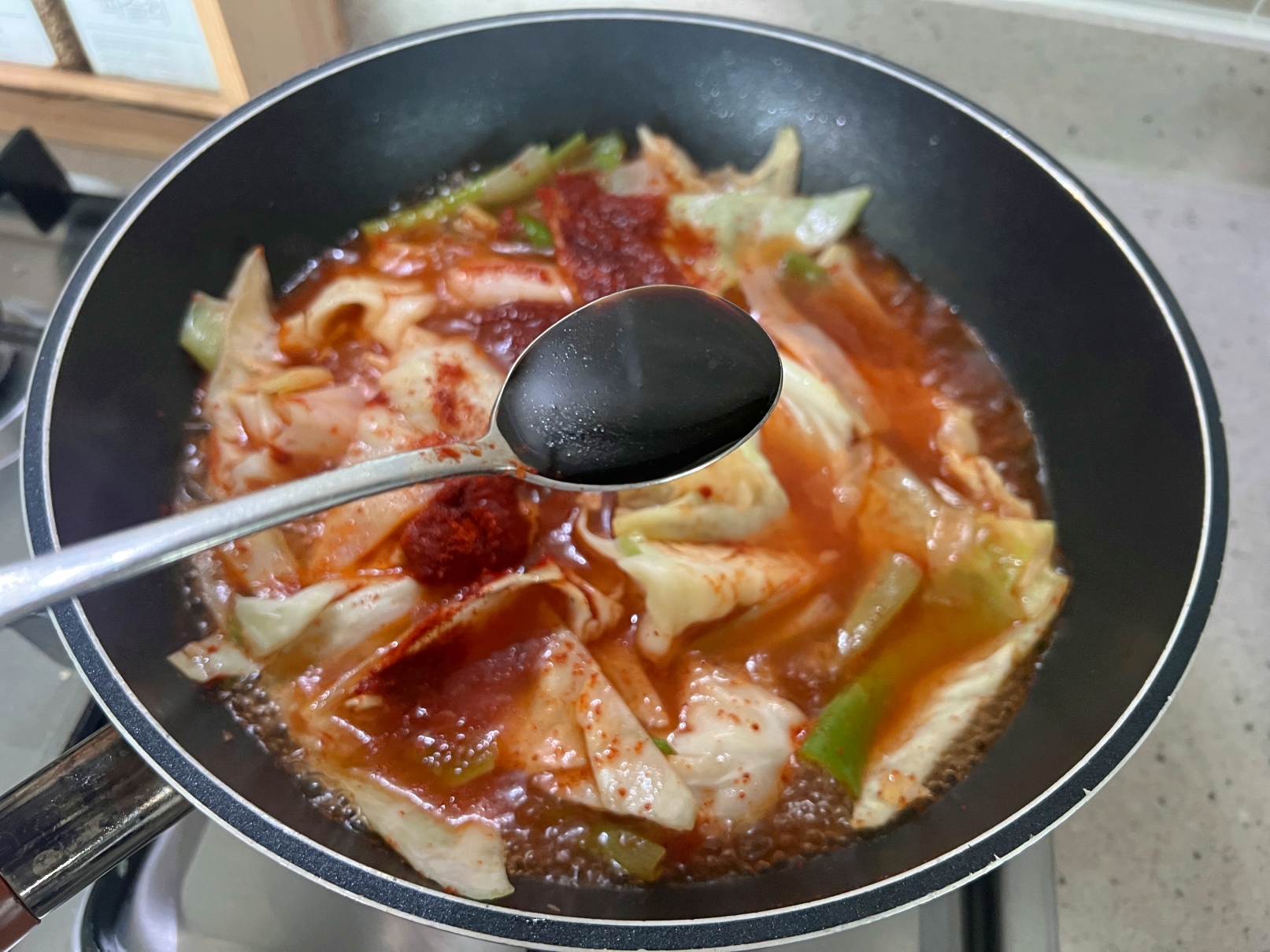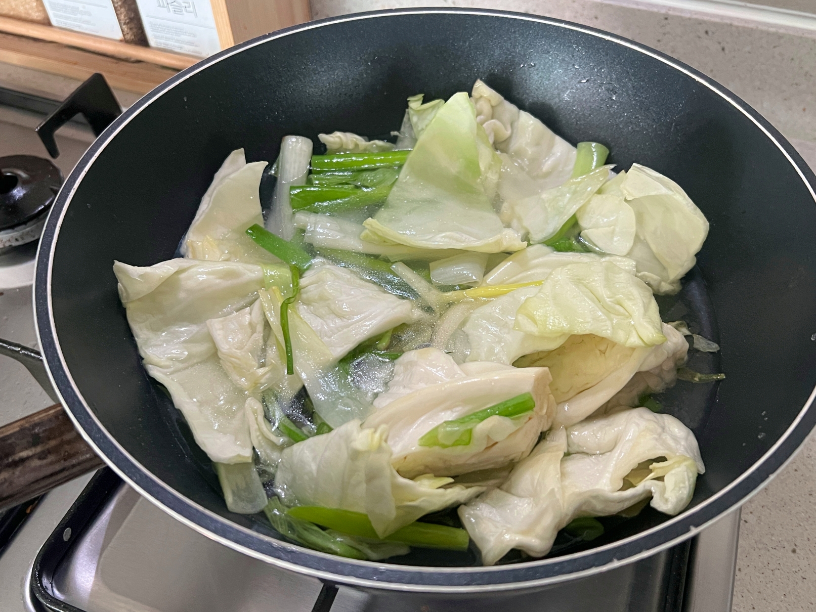양배추는 양념장이랑 물 넣을 때 같이 넣어도 되지만