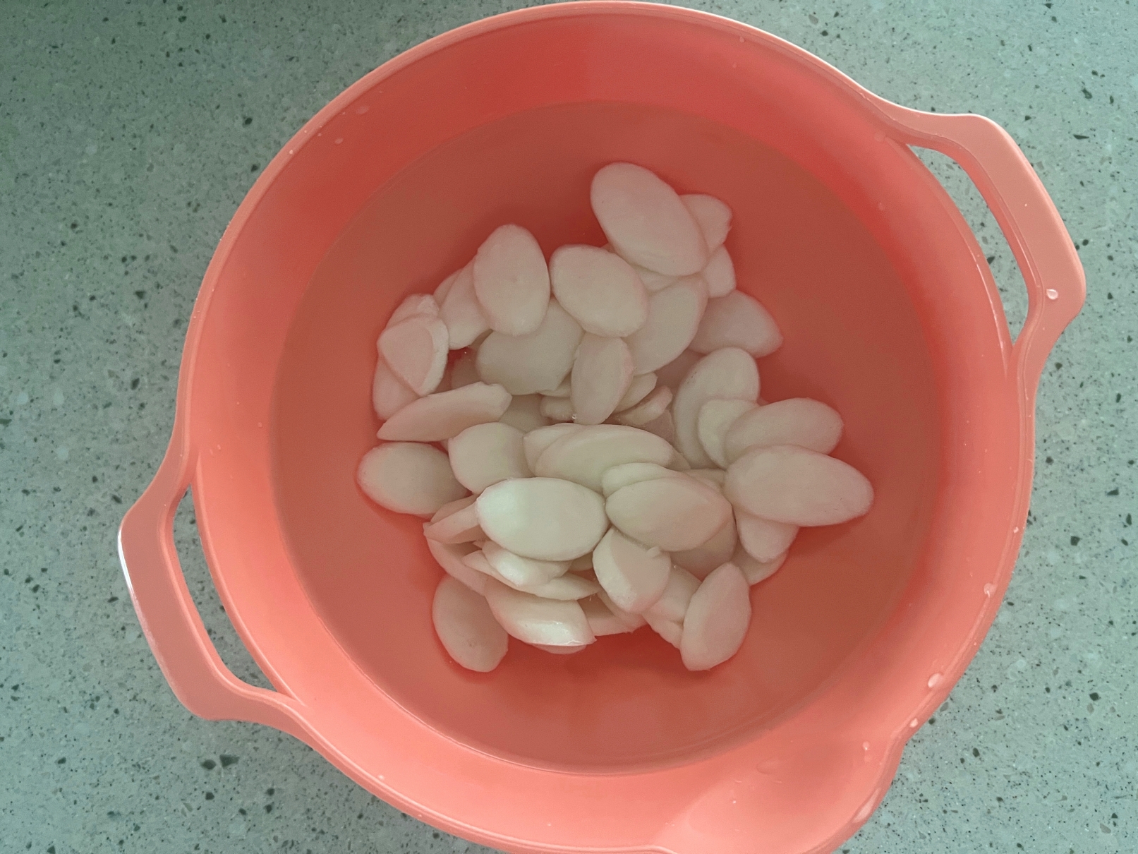 저희는 떡국떡을 넣었는데 할머니는 길쭉한 쌀떡을 넣으셨고