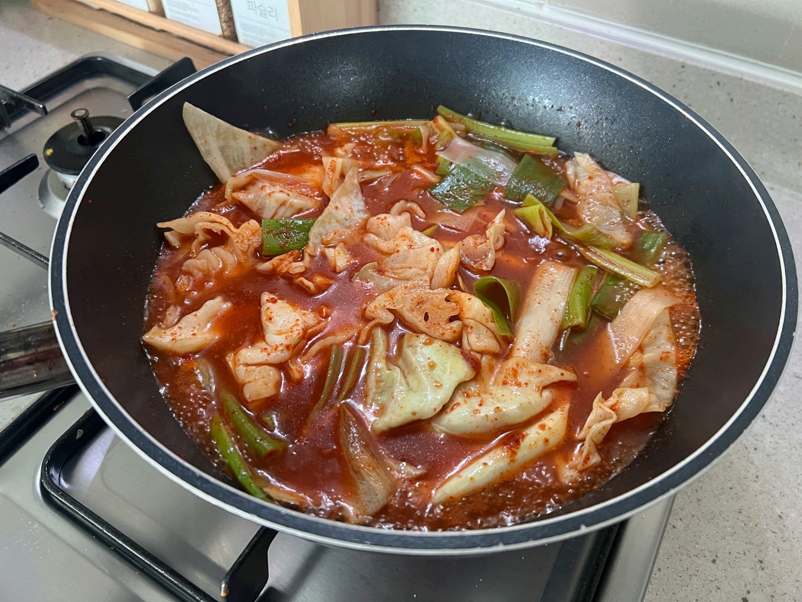 물 600ml를 붓고 센 불에서 양념장을 넣어줍니다