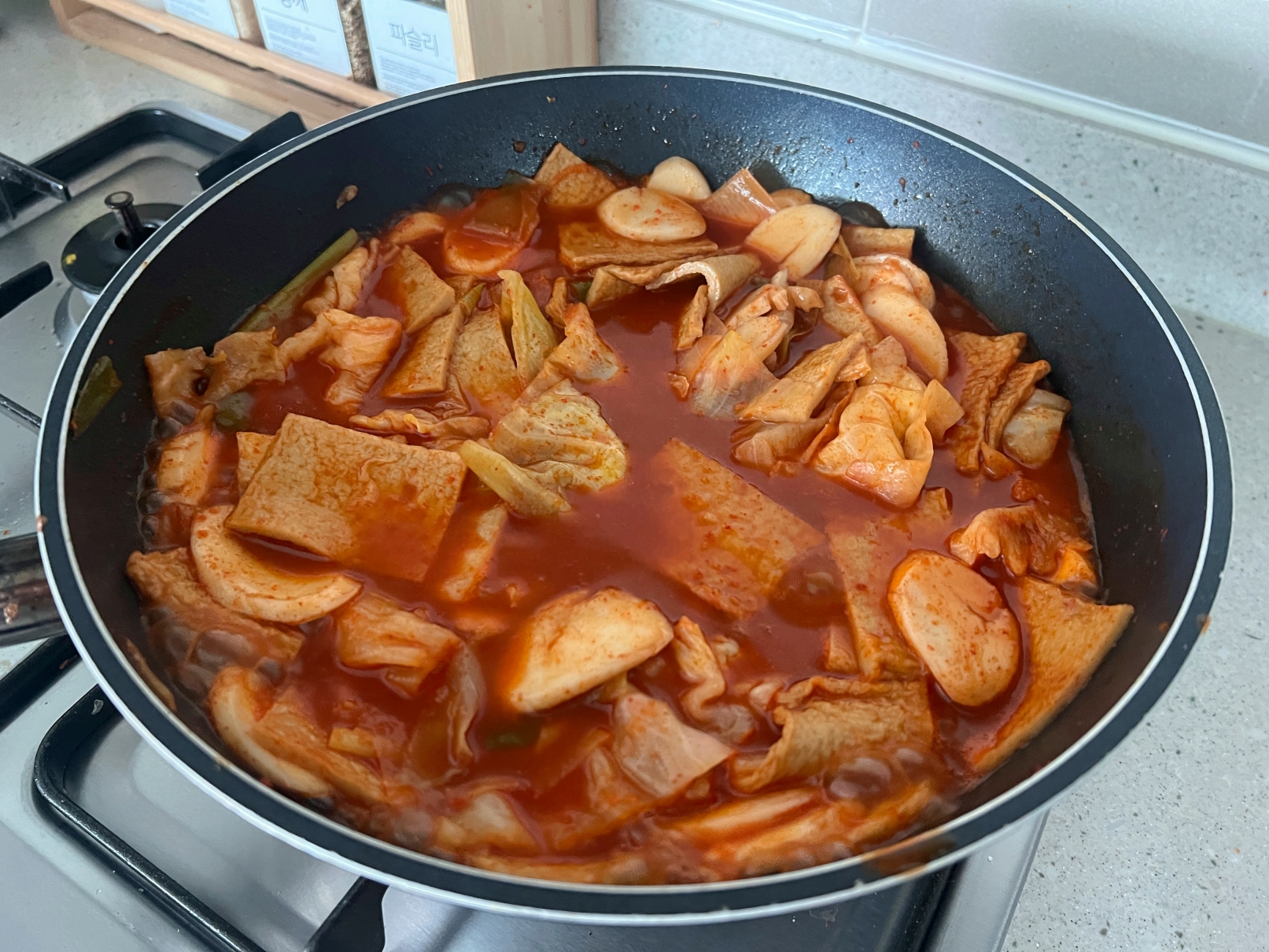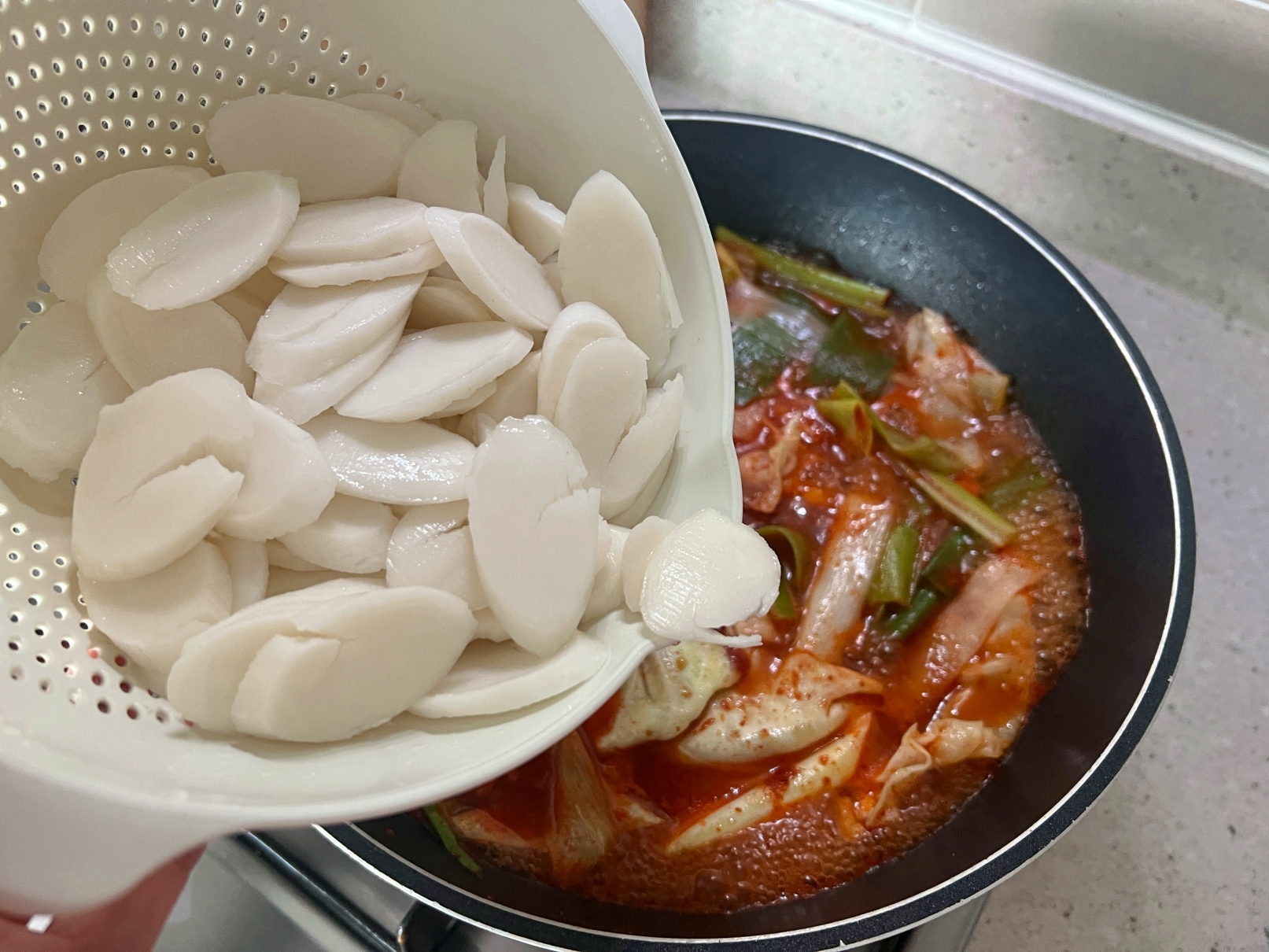 떡볶이떡과 어묵을 넣고 센불에서 끓여주세요