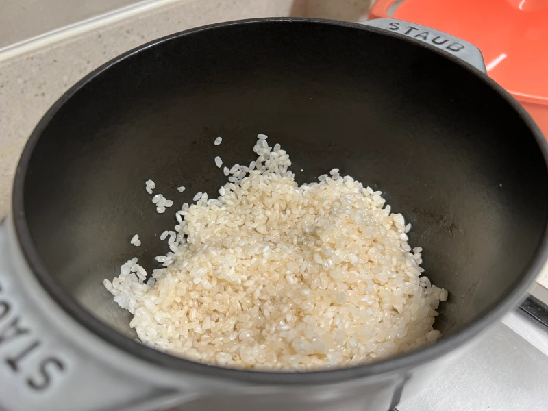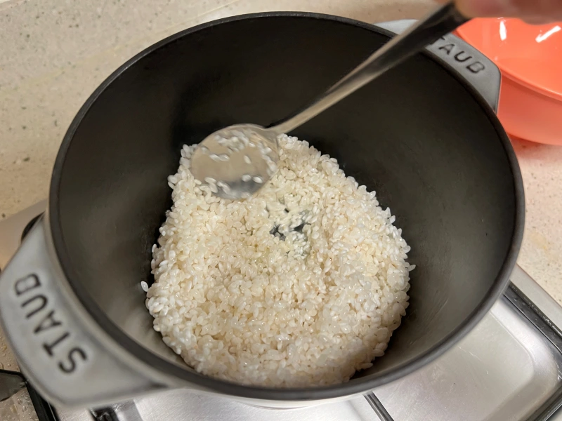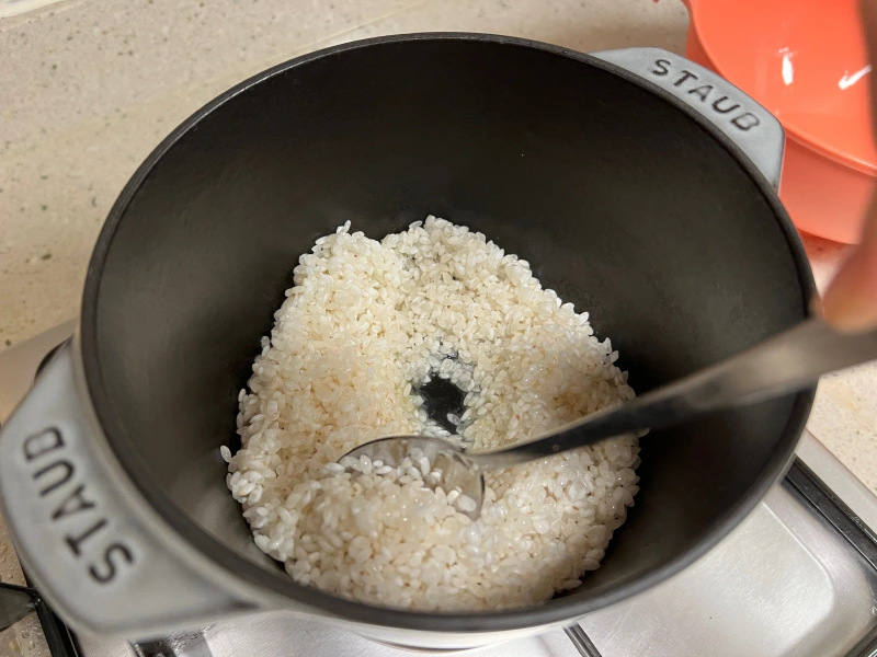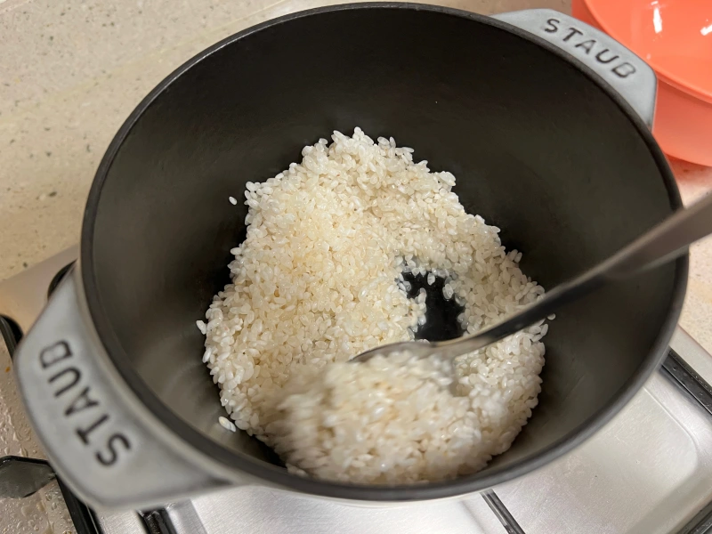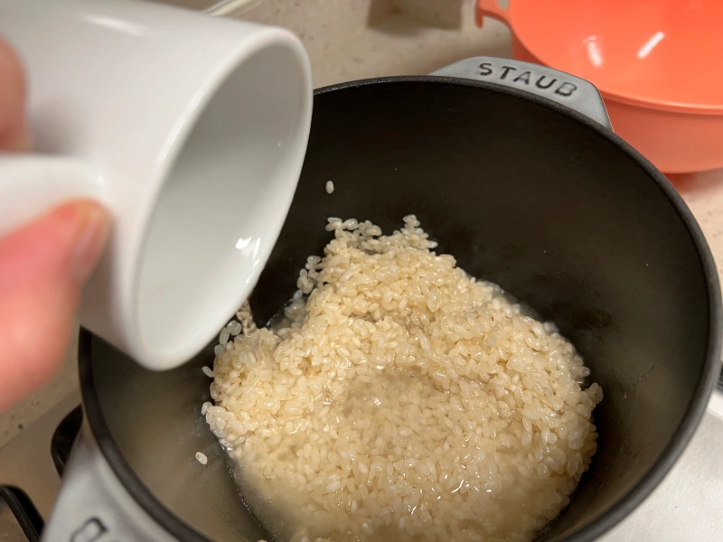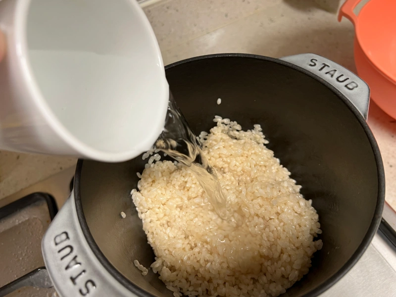 솥밥 지을 때 물과 쌀의 양은 1:1입니다