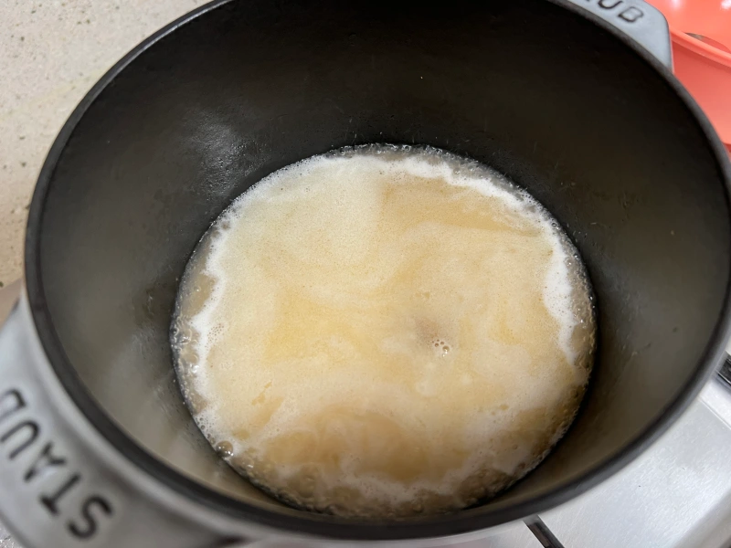 중약불에 버터 녹이고 불린 쌀 넣어서 반투명해질 때까지 볶아주세요