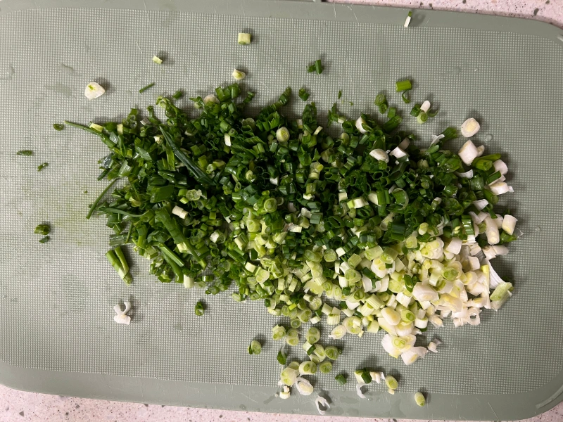 메인재료 명란 준비, 쪽파를 잘게 다져주세요