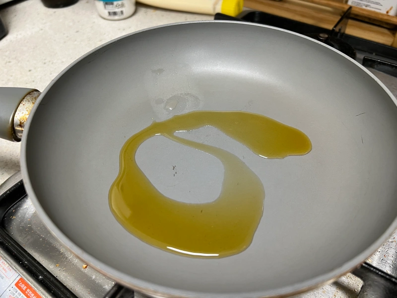 약불로 줄였을 때 미리 들기름 넣고 명란 구워줄게요