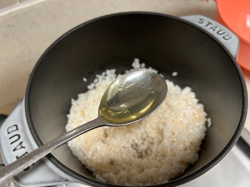 밥에 버터넣는 거 안 좋아하는 분들은 참기름을 두르고 쌀을 볶아도 되지만