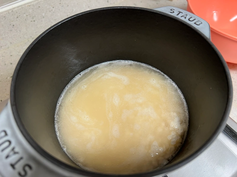 대신 쌀을 볶을 때에는 센 불에서 하면 무쇠냄비에 다 들러붙으니까 중약불에서 계속 저으면서 볶아주세요