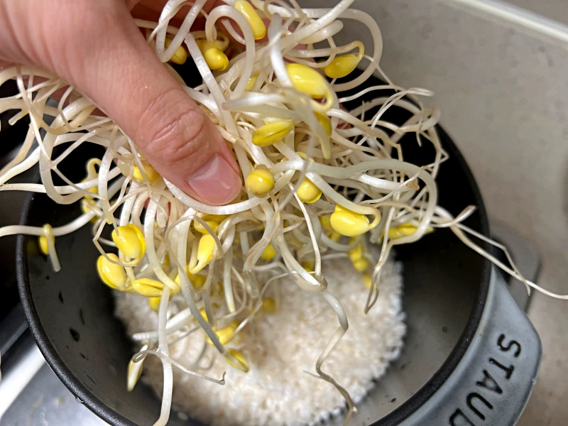 그리고 쌀 위에 콩나물을 다 올려주세요