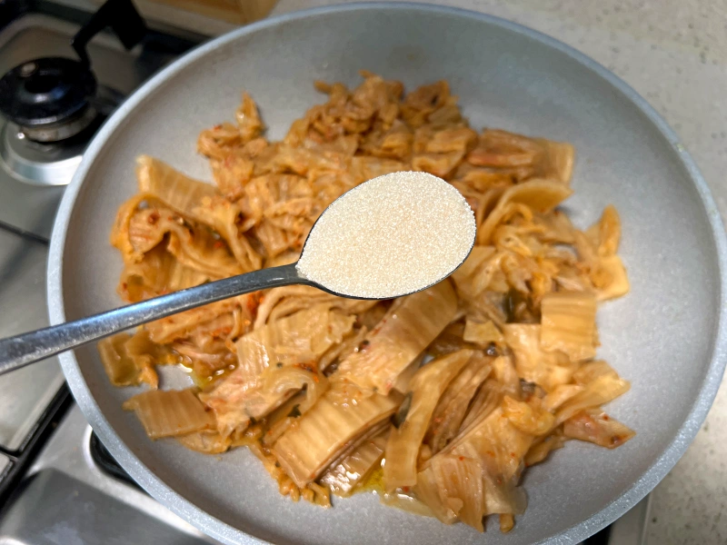 설탕 2스푼을 넣고 김치를 잘 볶아주세요