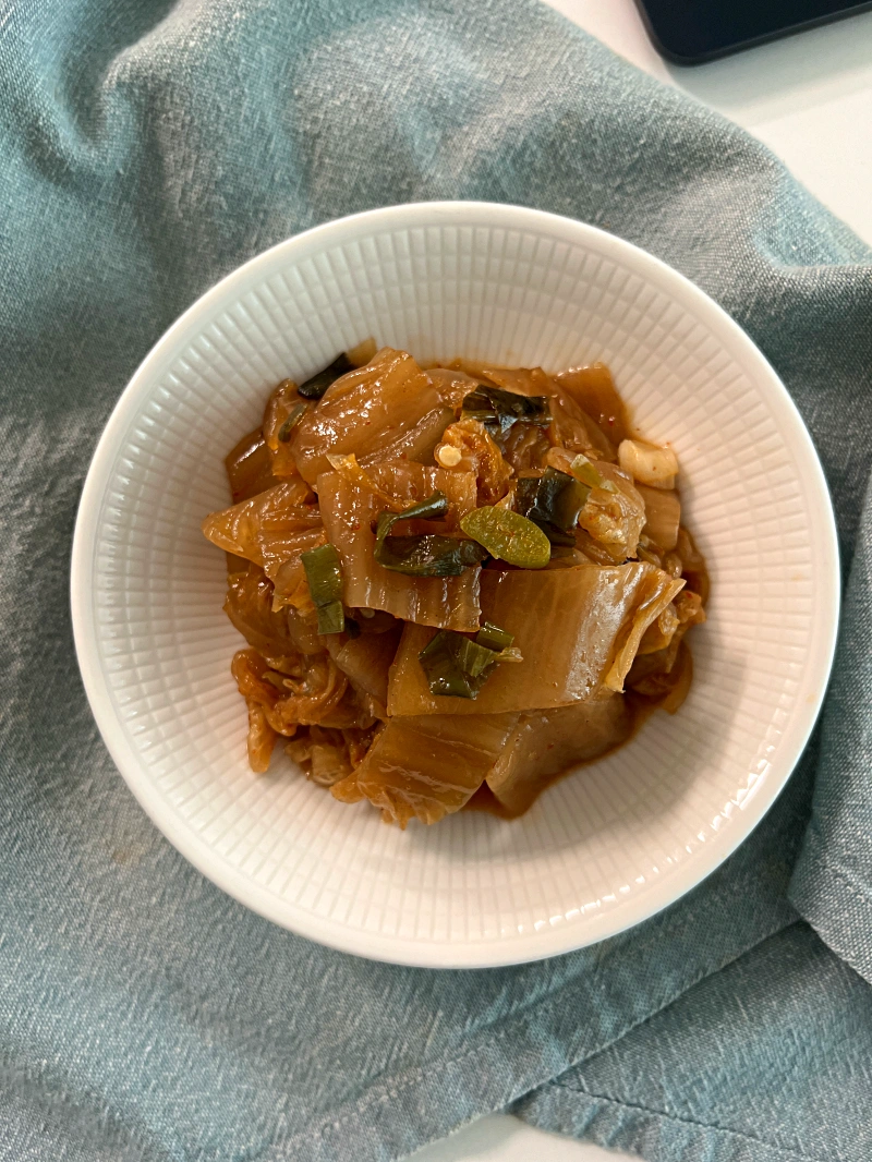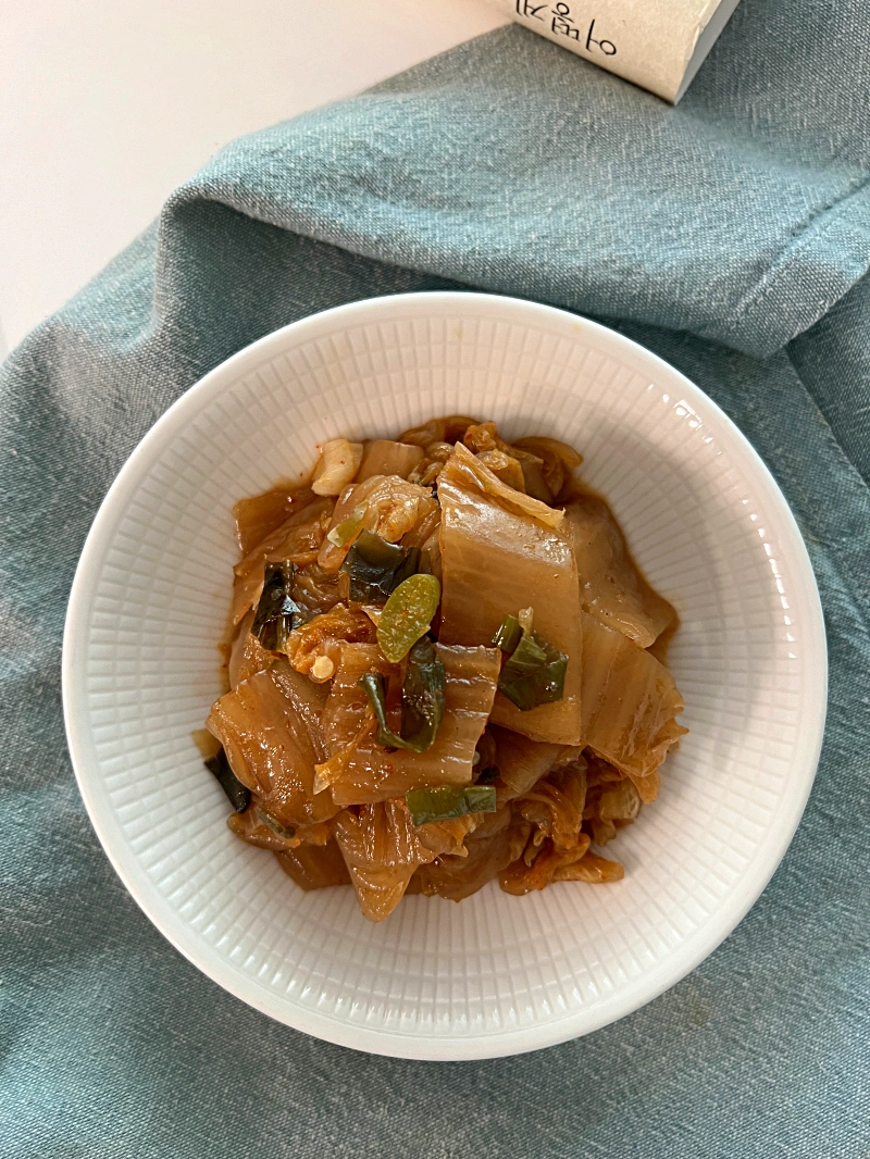 어차피 이정도 김치 양에 들기름이 많은 수준은 아니기 때문에 들기름의 고소한 향을 느끼고 싶으면 더 넣으셔도 됩니다