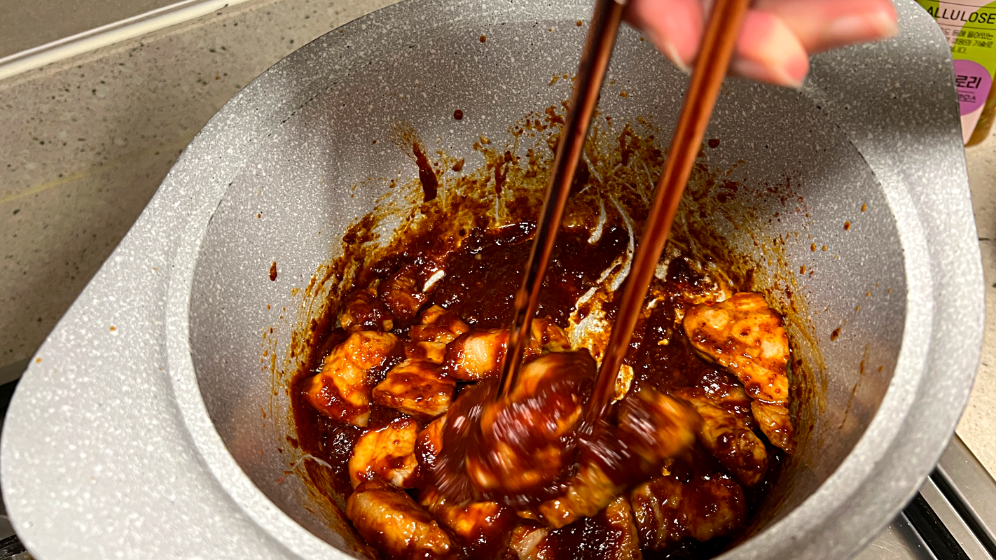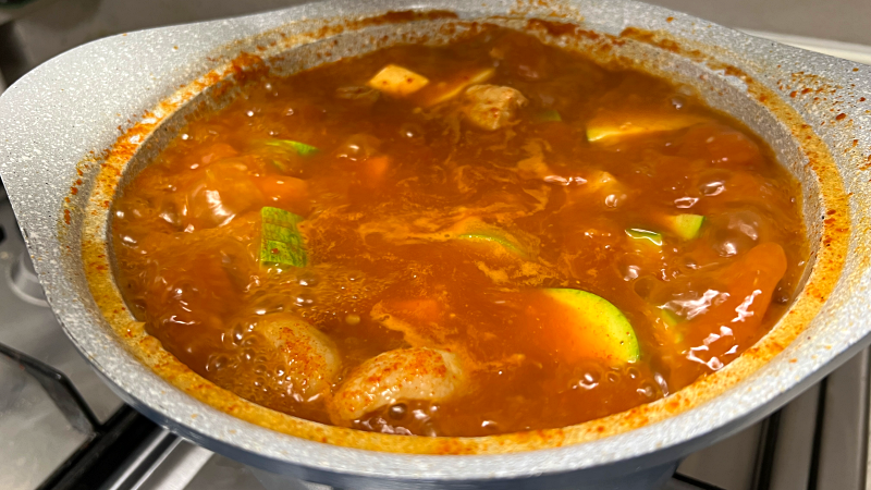 불은 중약불로 줄여서 고춧가루가 타지 않게 해주세요