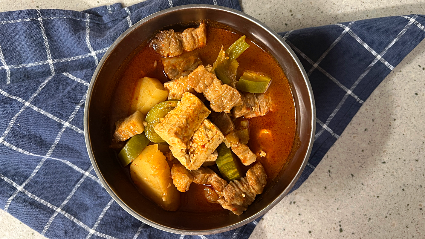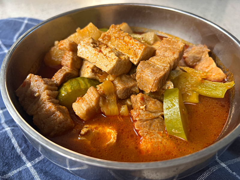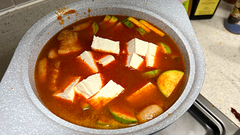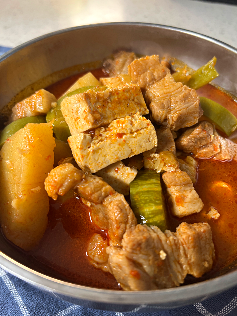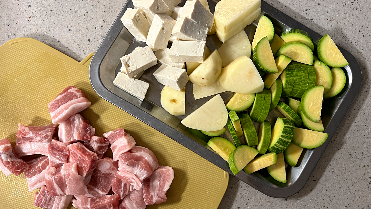 애호박 1개, 감자 1개, 두무 1모, 삼겹살 200g 큼직하게 썰어주세요