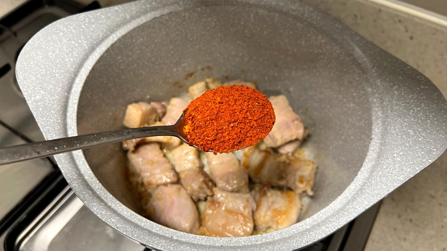 고춧가루 2스푼 (+고추기름 내는 과정)