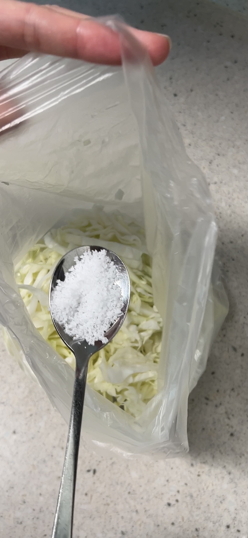 양배추는 썰어서 볼에 넣고 소금 1스푼 넣어도 되지만