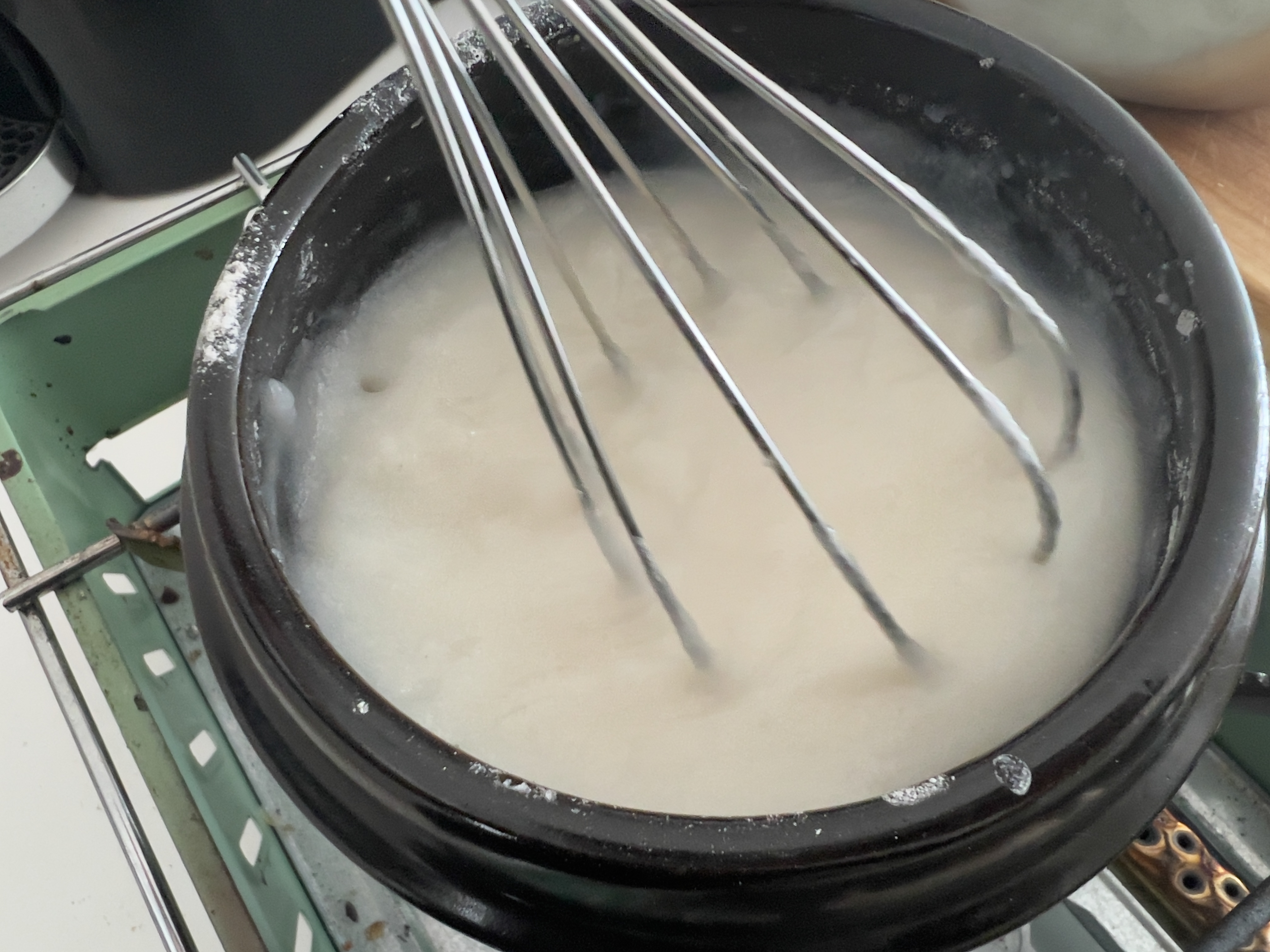 가열하는 시간이 충분해야 찹쌀풀이 만들어져요