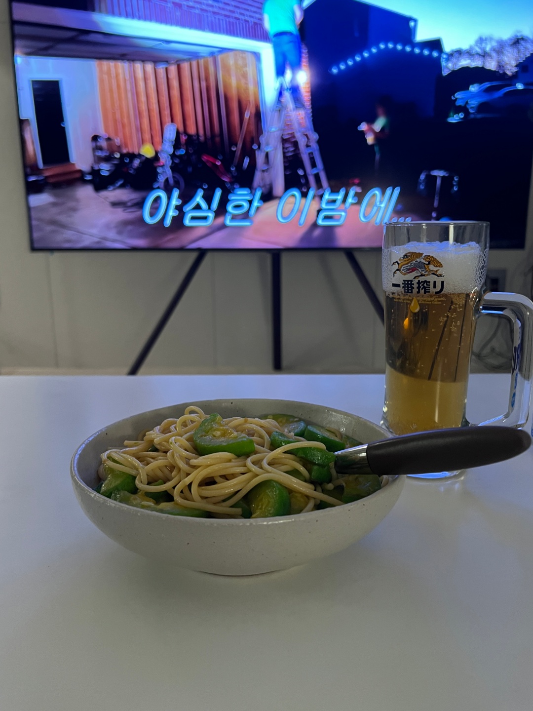 파스타 한 입 먹고 맥주 삘이다 해서 바로 꺼낸 나,,