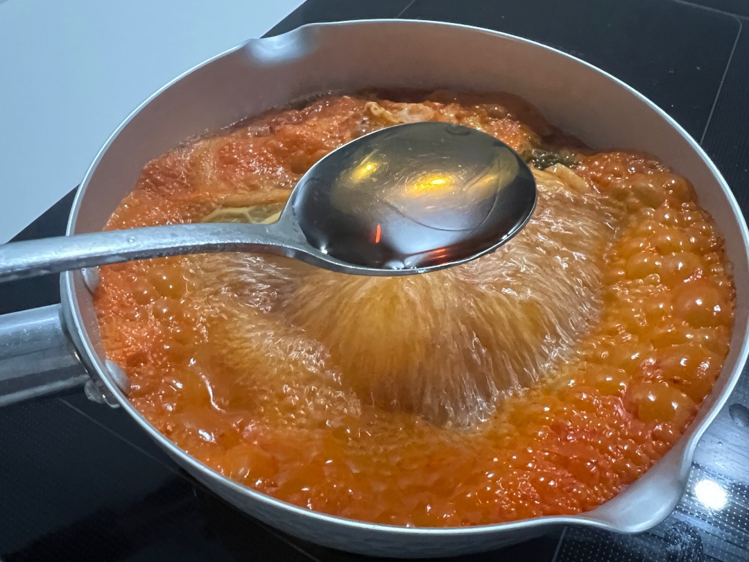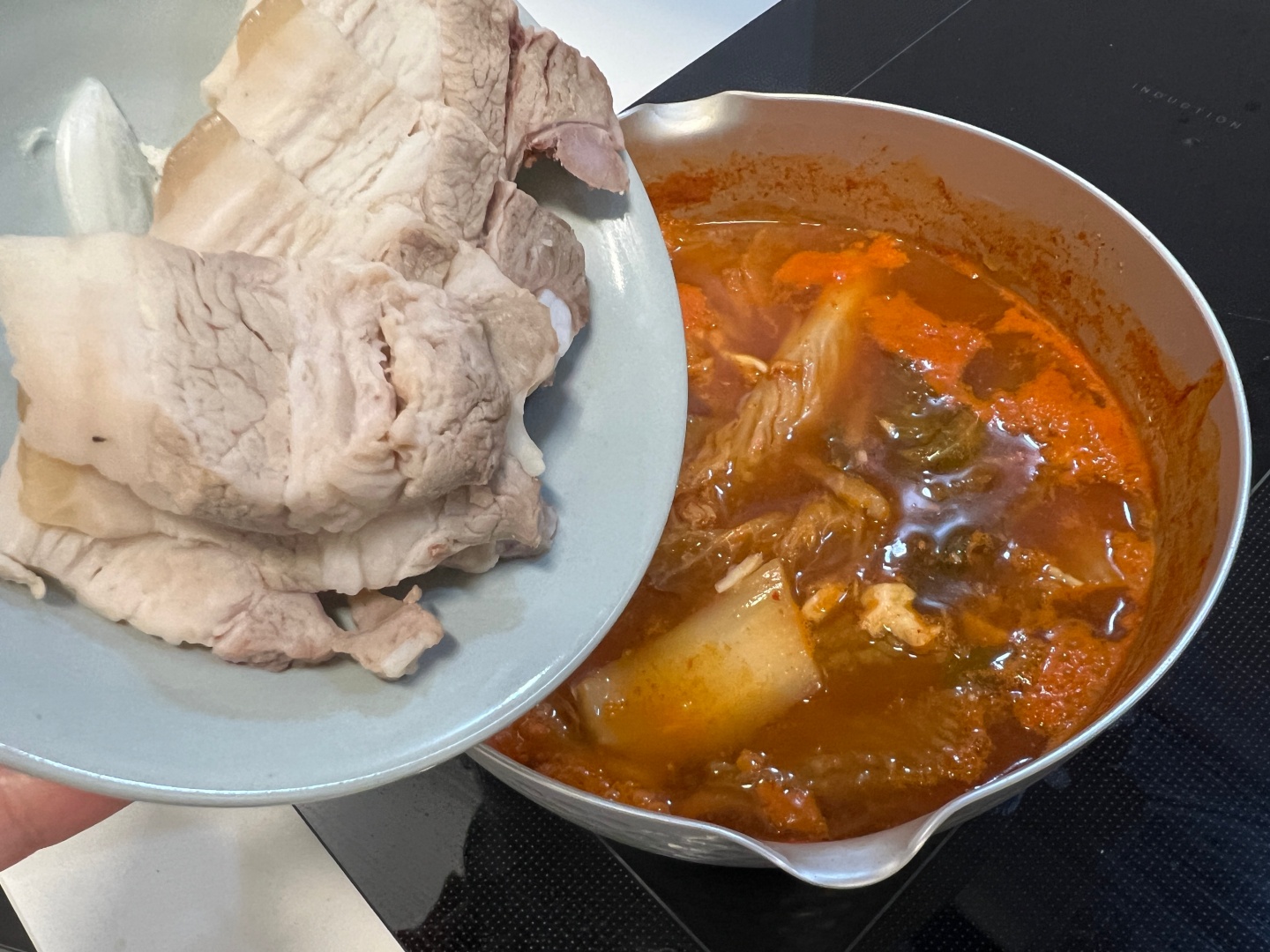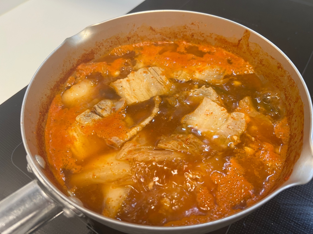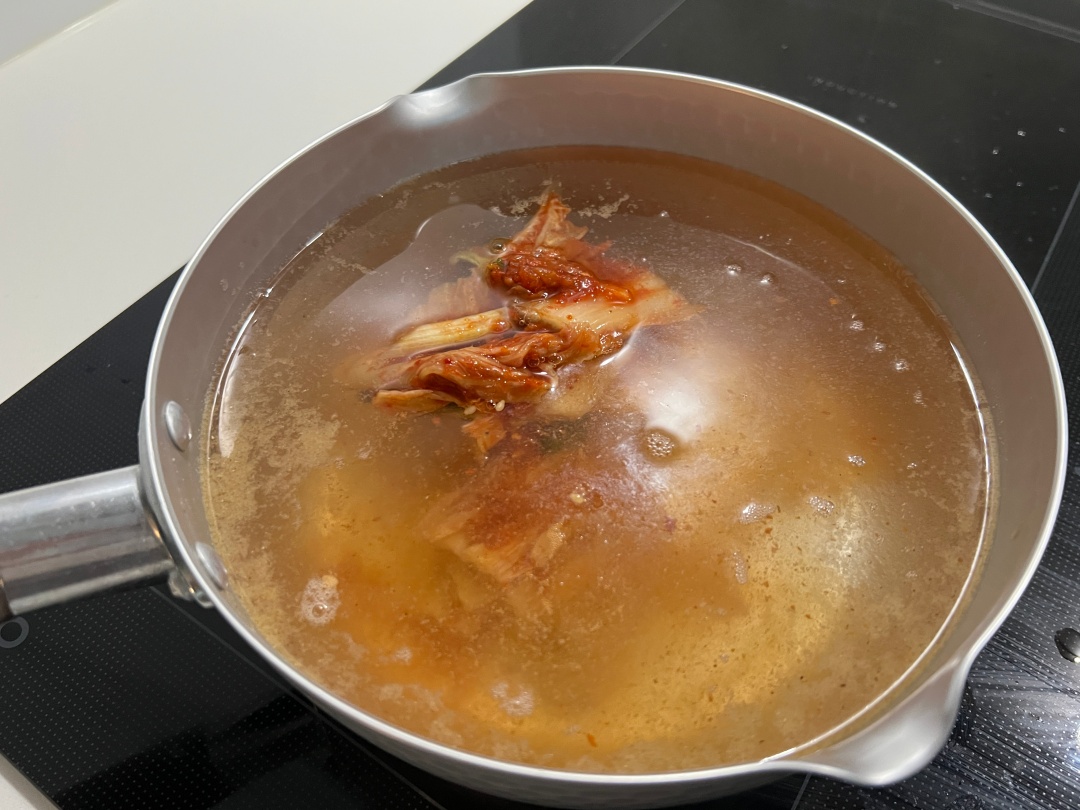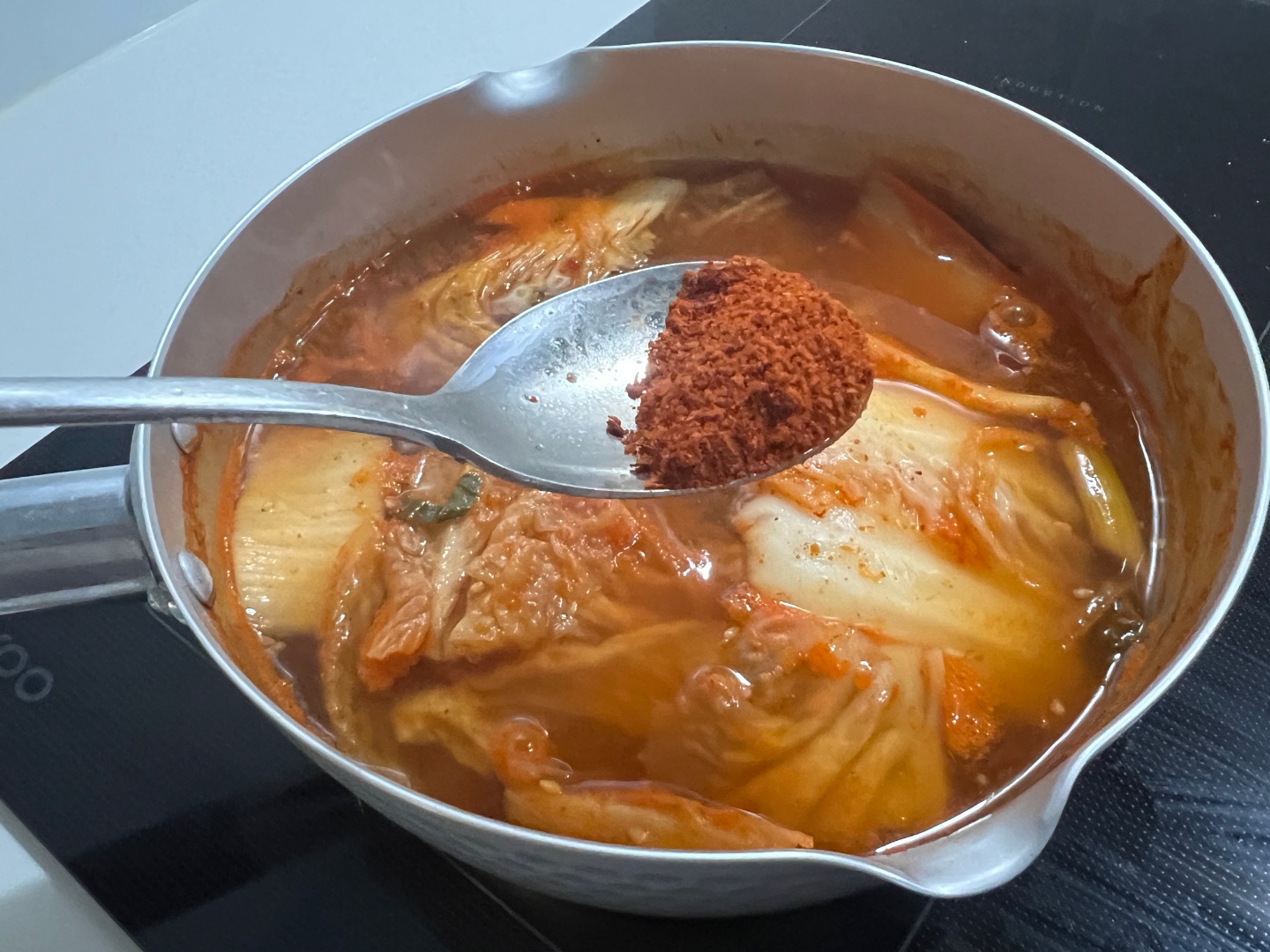 이때 간을 보고 간이 부족하면 김치국물을 추가